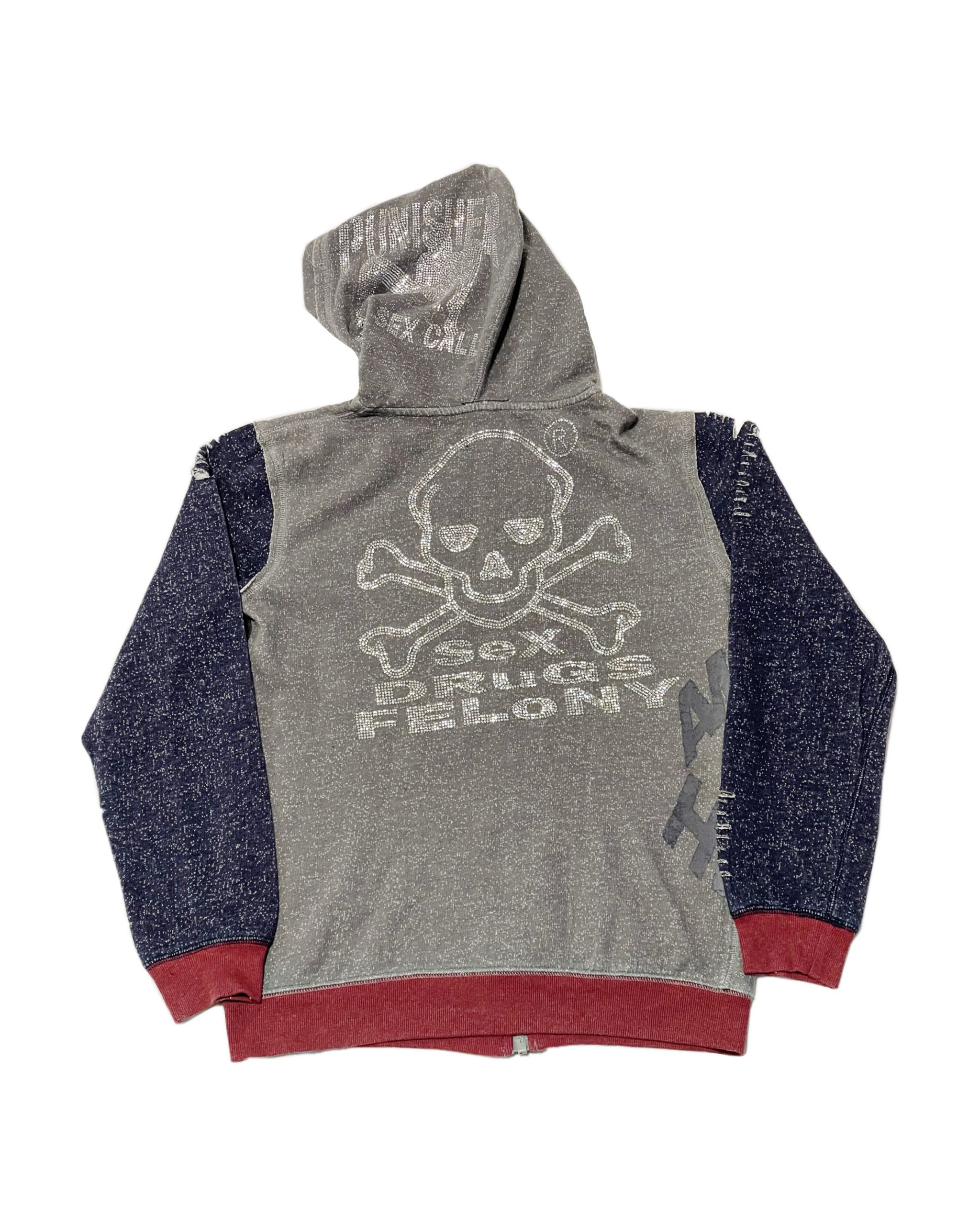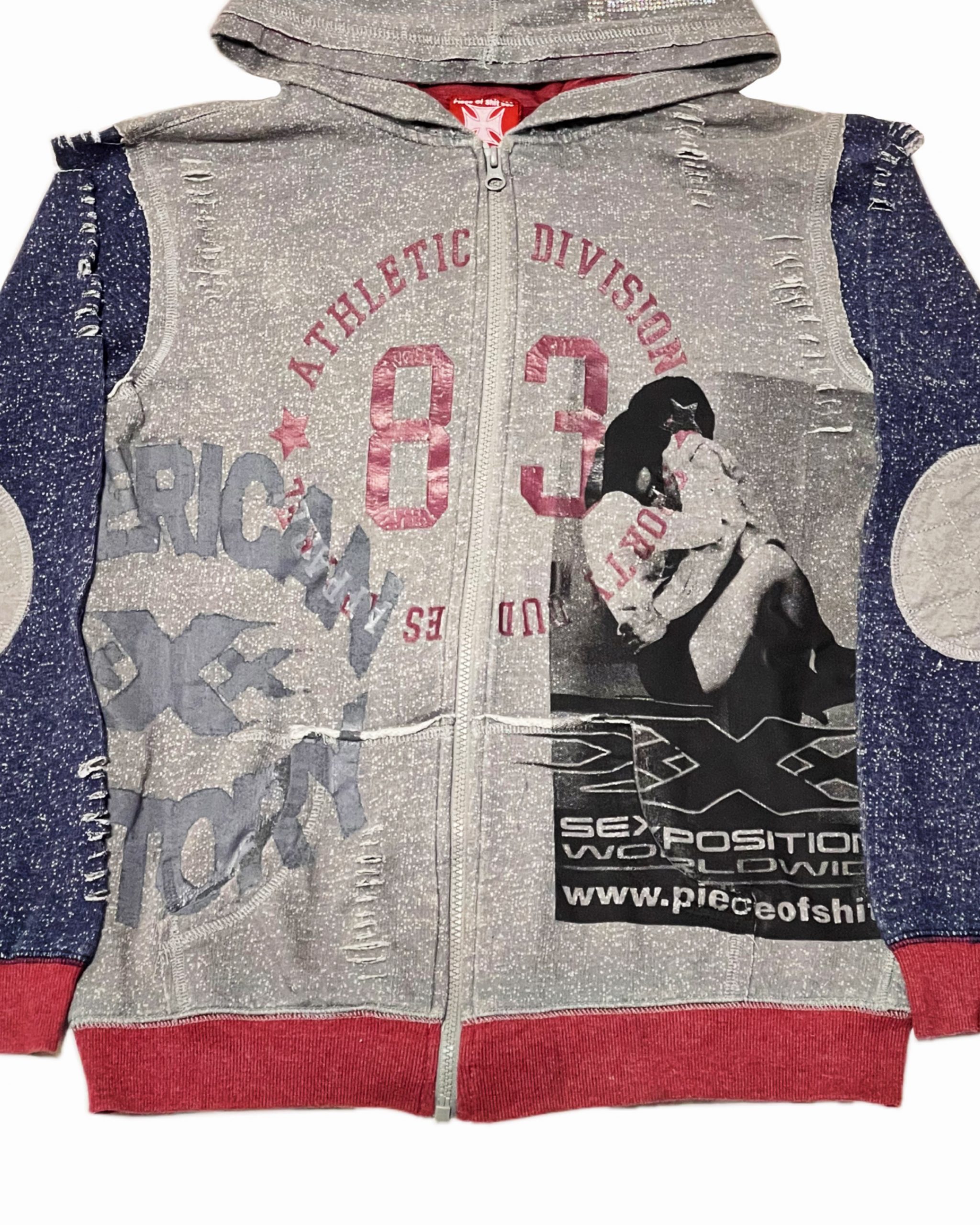 Zip hoodie athletic gris bleu et rouge chiné avec impression sur les deux côté du pull et diamond logo sur la capuche et le dos