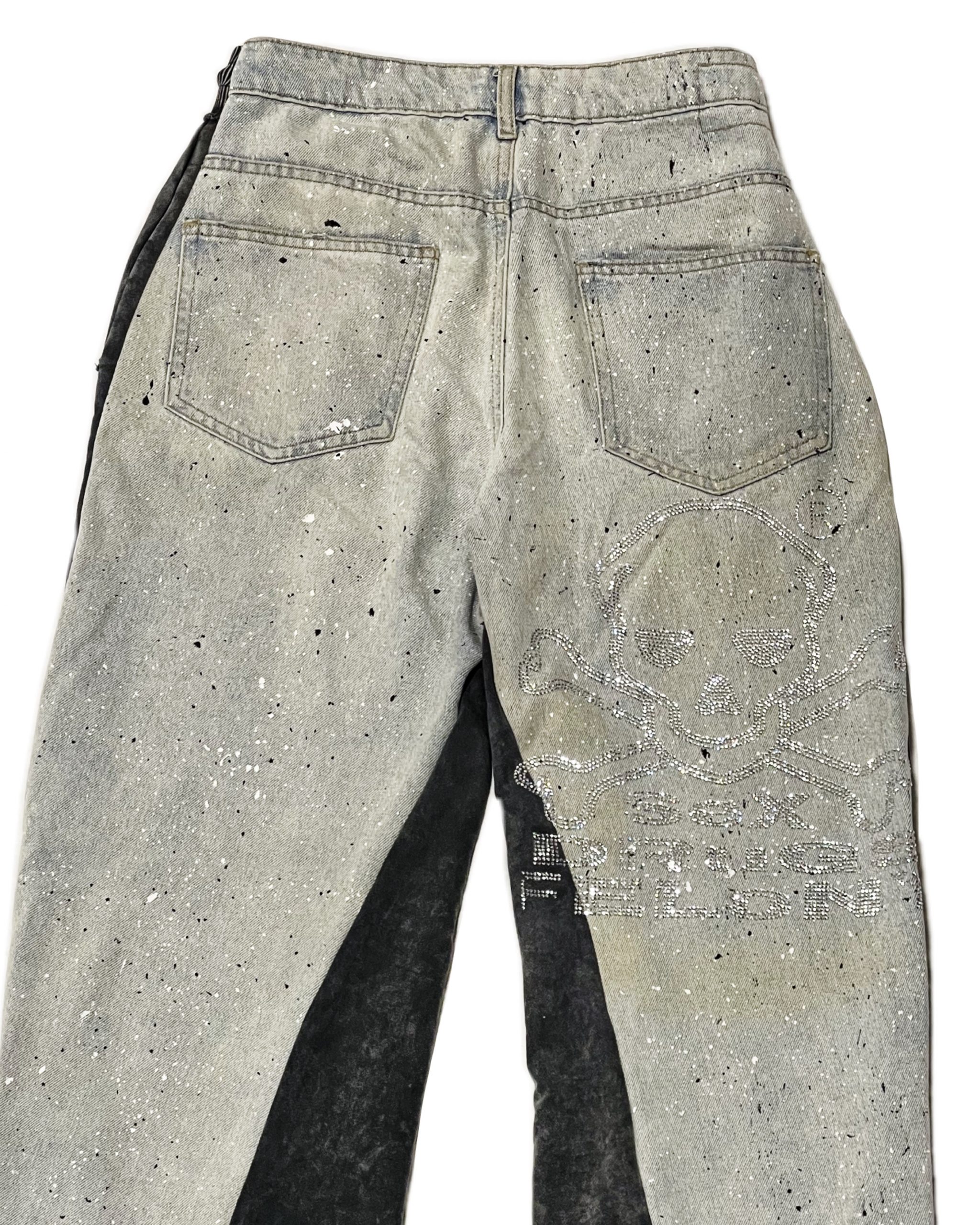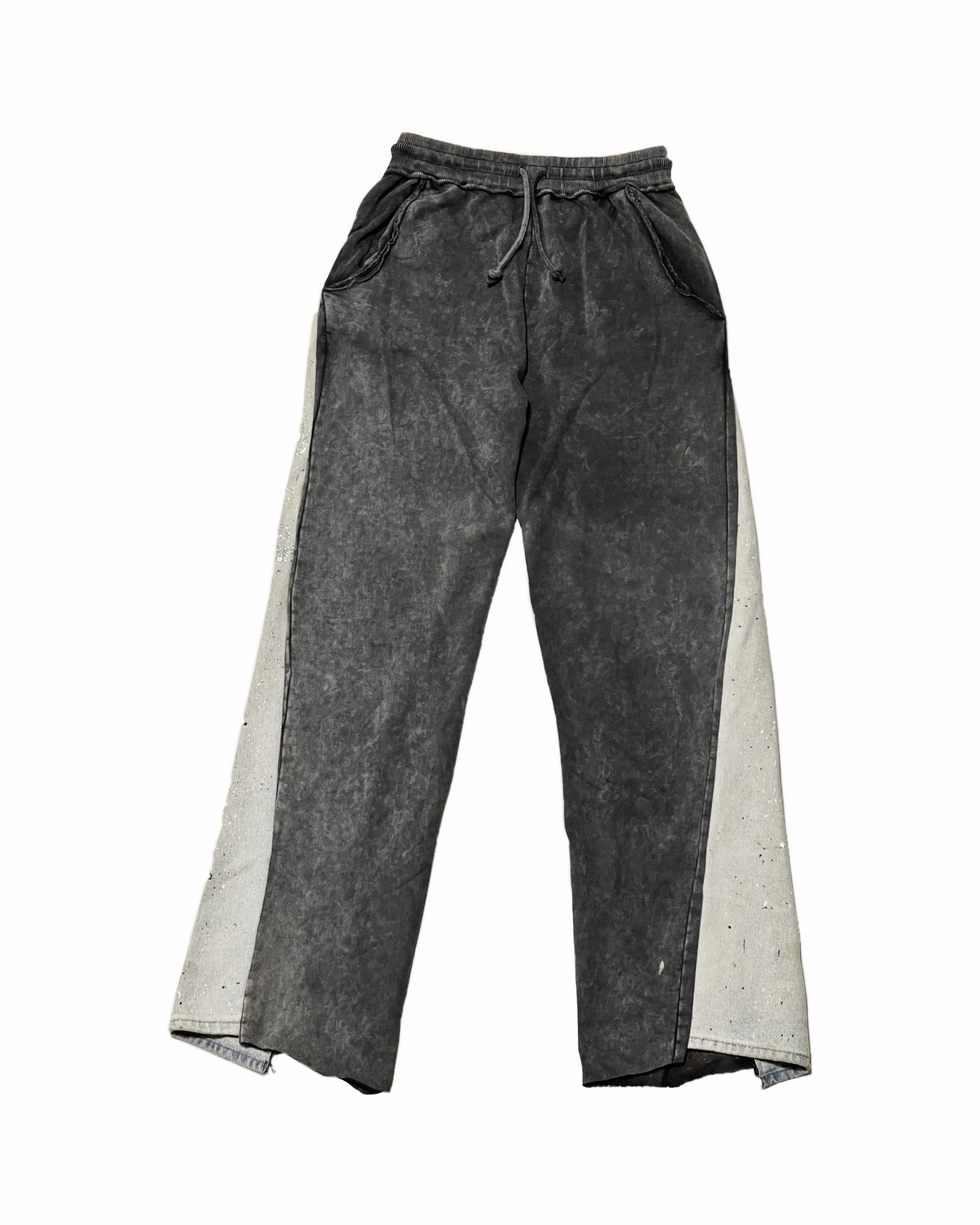 Jeans destroy mixé avec un jogging acid wash gris