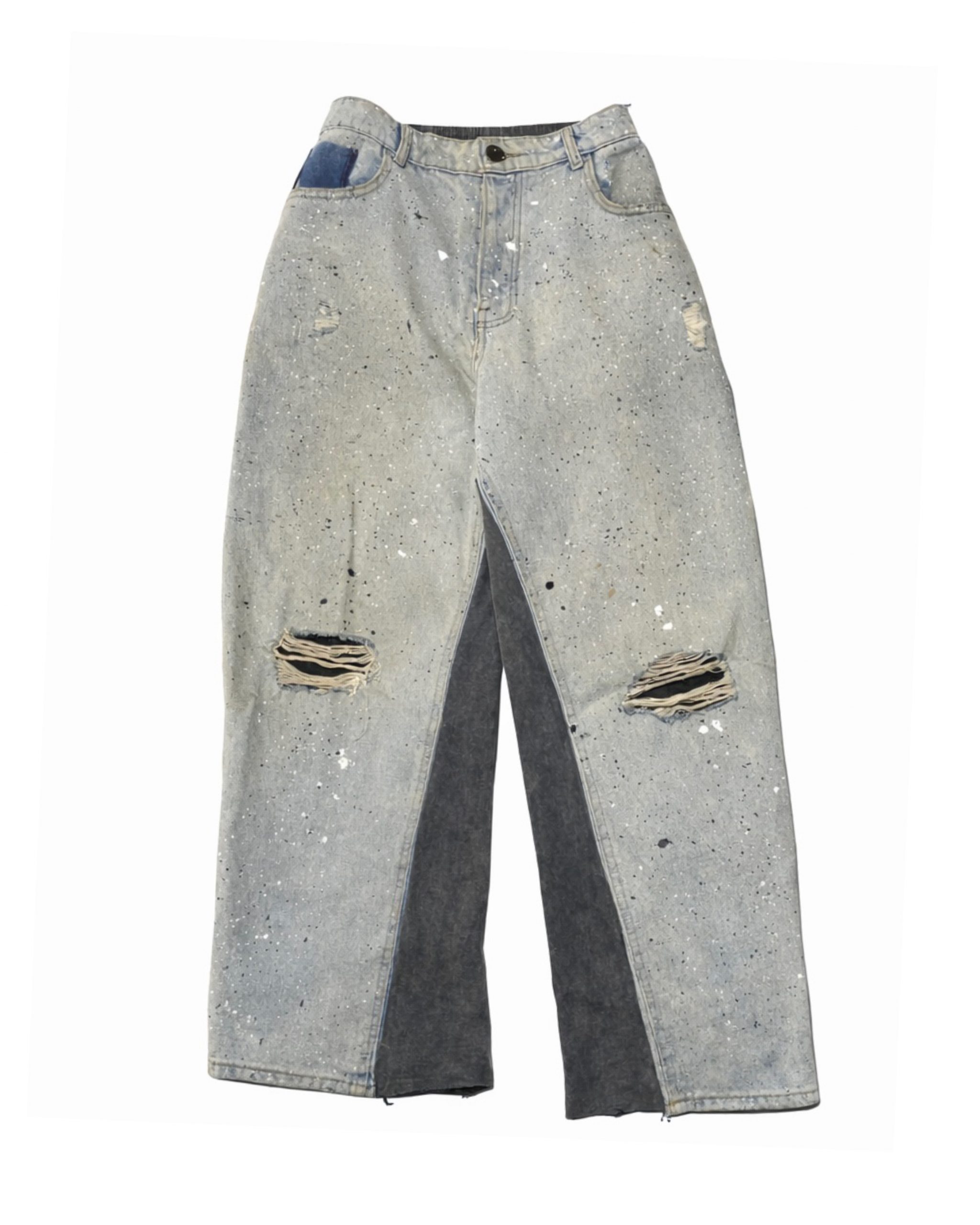 jeans destroy jaunis avec des légère taches de peinture l’arrière du pantalon est en jogging avec une impression diamond logo .